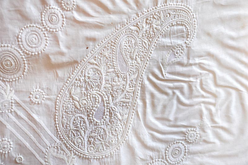 The origin of Chikankari is initiated by the influence of intricate carving patterns of Mughal architecture during their period. The Chikan work in Lucknow is older than 200 years and later it is patronized by Nawabs. There are 5000 families involved in Chikankari embroidery in and around villages of Lucknow.